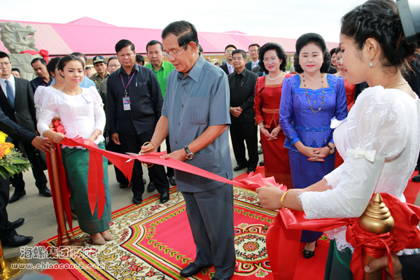 洪森首相致辭。他表示:我感到非常自豪,今天又一個(gè)新的成就落戶在柬埔寨大地上。馬德望海螺所在地以前是柬埔寨內(nèi)戰(zhàn)戰(zhàn)場,現(xiàn)在這里建起了現(xiàn)代化美麗的水泥工廠,看到這番新的景象倍感欣慰,非常高興參加馬德望海螺水泥公司投產(chǎn)剪彩儀式。馬德望海螺水泥公司是由中國海螺集團(tuán)和柬埔寨徐氏太平洋集團(tuán)合資投資建設(shè),總造價(jià)達(dá)2.3億美元,年生產(chǎn)能力近200萬噸。以前,柬埔寨需要從國外進(jìn)口水泥來滿足國內(nèi)市場,如今,馬德望海螺的建成投產(chǎn)將大幅提升柬埔寨國內(nèi)水泥生產(chǎn)能力,目前柬埔寨水泥產(chǎn)能達(dá)到700萬噸,已經(jīng)能夠滿足柬埔寨國內(nèi)市場需求。柬埔寨目前正處于高速發(fā)展期,政府也正在考慮轉(zhuǎn)用水泥來建設(shè)道路,水泥的需求量將不斷增高。我們鼓勵像海螺這樣的水泥企業(yè)加大在柬埔寨的投資,建設(shè)更多的水泥廠。政府不僅希望目前柬埔寨水泥產(chǎn)能能夠自給自足,更希望將柬埔寨國內(nèi)生產(chǎn)的水泥出口到國際市場,為柬埔寨創(chuàng)收創(chuàng)匯。