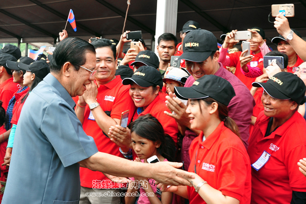 剪彩合影結(jié)束后,洪森首相及夫人到達(dá)儀式廣場,對公司員工和縣鄉(xiāng)人民群眾進(jìn)行了親切慰問。